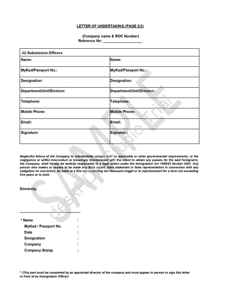 An ESD Letter of Undertaking (LoU) is a mandatory supporting document during employer account registration on the Expatriate Services Division (ESD) portal, listing key personnel allowed to act on the company’s behalf:
